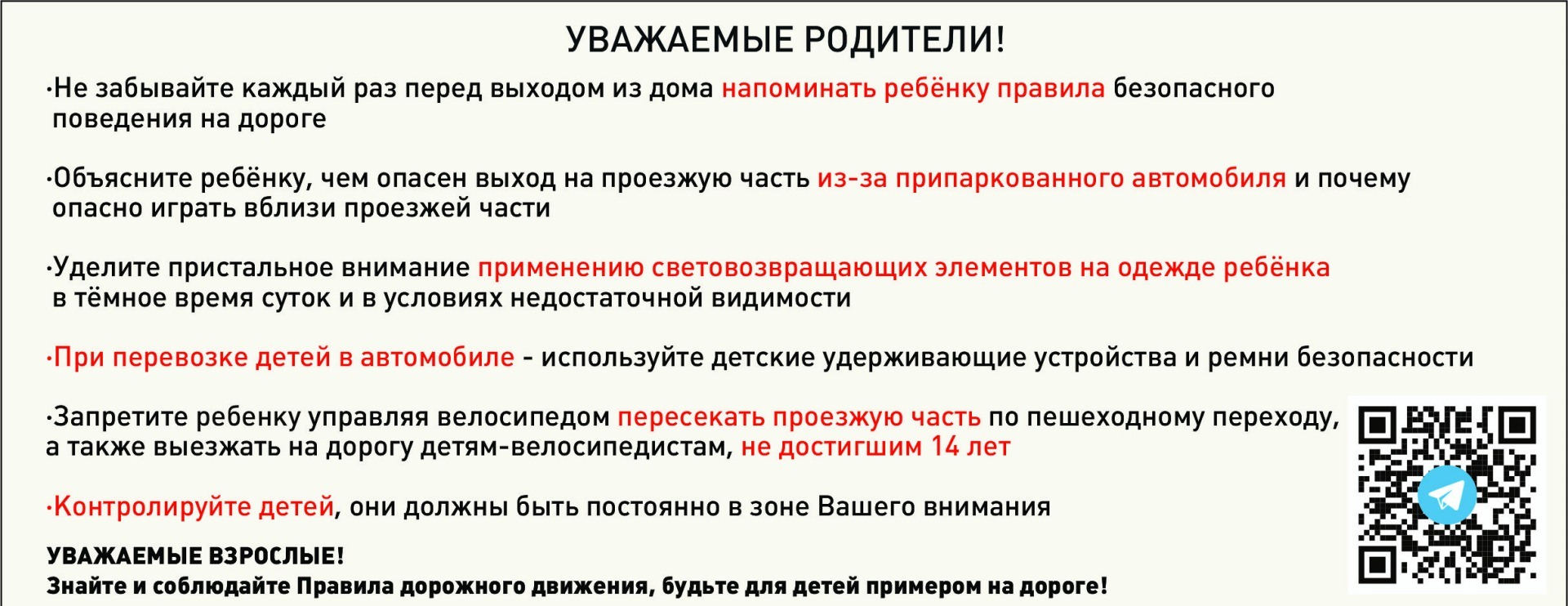 - Соблюдайте Правила дорожного движения сами и помогайте в этом своим родным и близким!