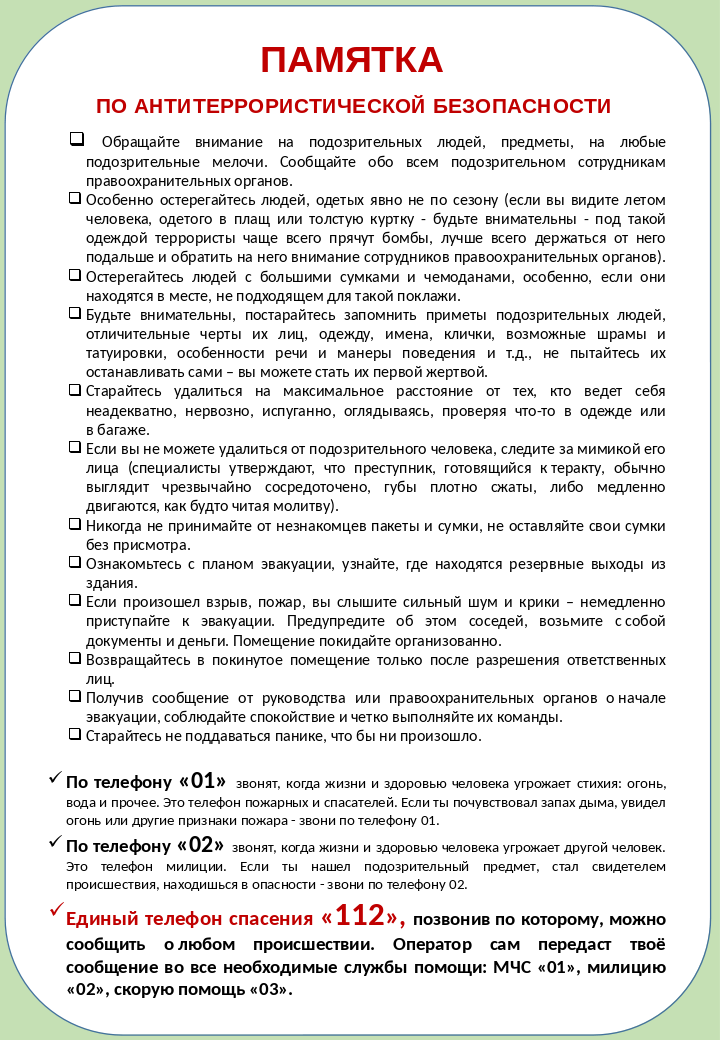 уважать установленный порядок в целях обеспечения безопасности ваших детей.